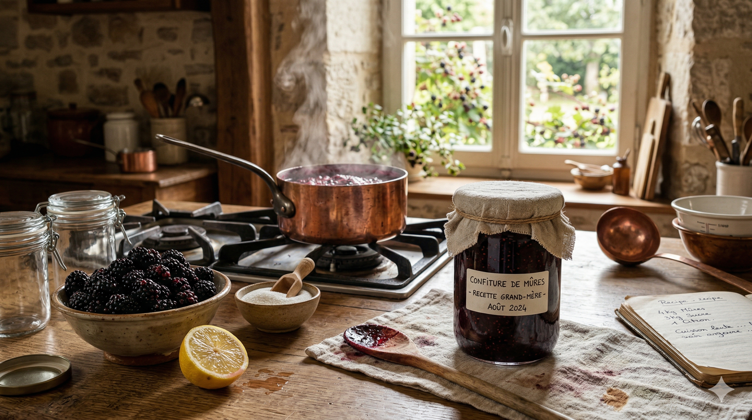 La confiture de mûres façon grand-mère se prépare avec seulement 3 ingrédients : des mûres bien mûres, du sucre et du citron. C’est une recette familiale, accessible dès le premier essai, qui permet de conserver les fruits de la cueillette pendant tout l’hiver.