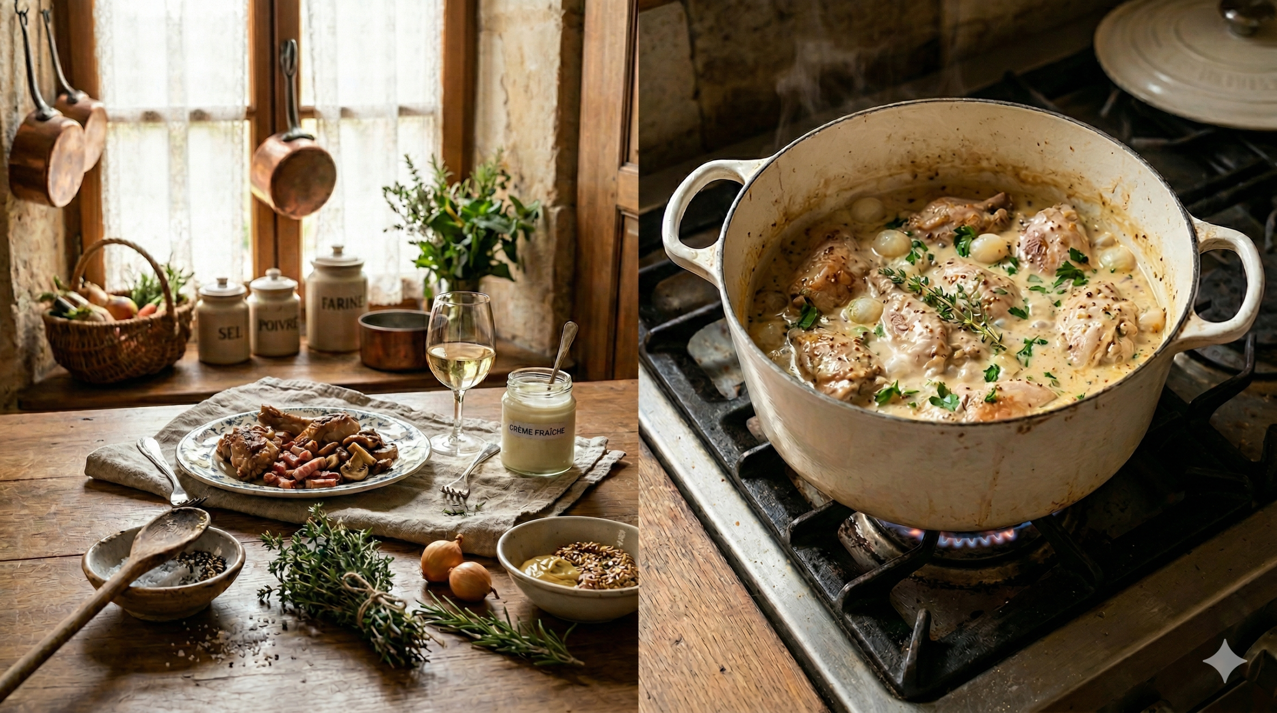 Ce plat appartient à la grande famille des mijotés de tradition française. Il repose sur trois piliers : une viande bien colorée, une cuisson douce et une sauce généreuse. Le lapin cuit entre 1 h et 1 h 30 selon la taille des morceaux. La sauce mêle vin blanc sec, bouillon de volaille, crème fraîche et moutarde. Le résultat est rustique, chaleureux, et franchement gourmand. C’est exactement ce qu’on attend d’une recette de cuisine de campagne.