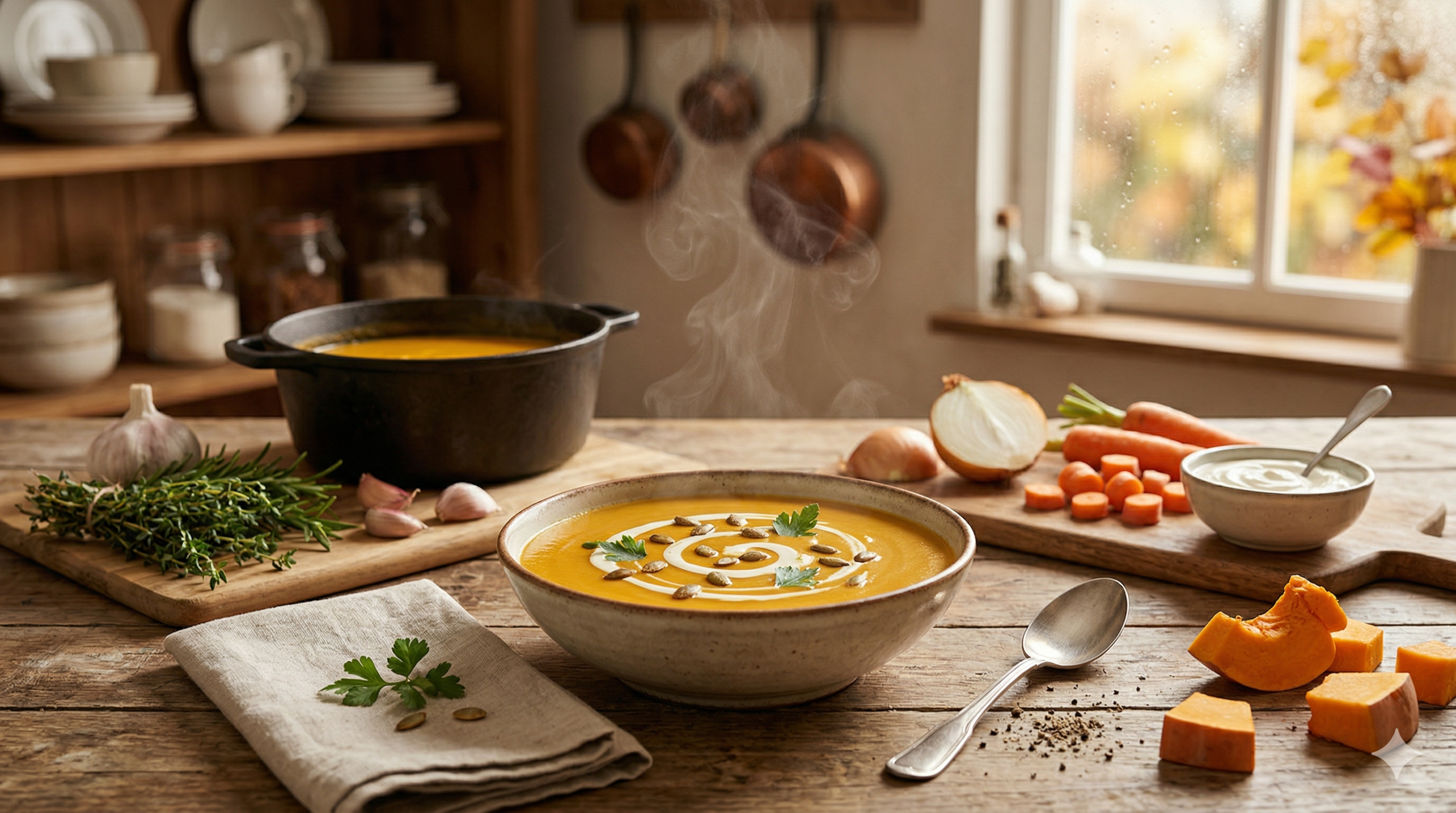 Astuce de chef : faites rôtir les cubes de potiron au four à 200 °C pendant 20 minutes avant de les ajouter à la casserole. La caramélisation légère intensifie le goût et donne un velouté plus parfumé. Cette étape est facultative mais elle change vraiment tout.